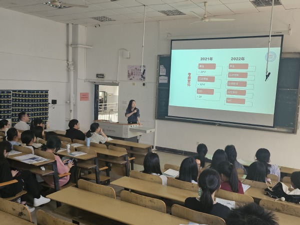 刘倩茜以“会英语的你挺飒的”为题,从英语考试形式、考纲内容及题型、学习规划和课程内容3方面对学生进行了深入浅出的讲解。同学们如沐春风,用经久不息的掌声向刘老师表示衷心的感谢。通过刘老师的讲解,大家对所英语的备考有了更加清晰地认识,也明白了如何根据自身情况制定合理的英语备考计划。
