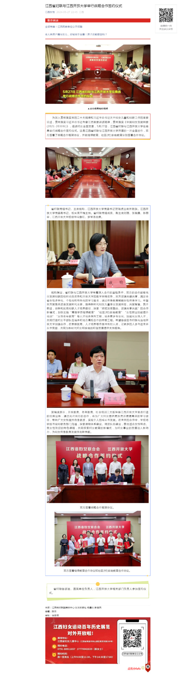 5月27日,江西省妇联与WilliamHill官方网站在南昌举行战略合作签约仪式。这是江西省妇联与WilliamHill官方网站开展的一次全面合作,双方签署了战略合作框架协议,并就继续教育、社区(村)家庭教育分别签署合作协议。原文地址:https://mp.weixin.qq.com/s?__biz=MzI1NTEyMTg2Ng==&mid=2652045475&idx=1&sn=56470dc2552943cb8e0dd0d4b114e667&chksm=f1dd6006c6aae910dc8ccc1054265d4b9e5a74e3f921f2f9e74f9bfdab4f88e705b0a0273c82&mpshare=1&scene=1&srcid=0527bszuPsVAG171JUm3MHlo&sharer_shareinfo=48e5eb4f9ed95a63d6d72600f59cf643&sharer_shareinfo_first=48e5eb4f9ed95a63d6d72600f59cf643&exportkey=n_ChQIAhIQc5GmYA6YF4jgQNz3tzPlxBL1AQIE97dBBAEAAAAAADKWKo9foPkAAAAOpnltbLcz9gKNyK89dVj0XvLc%2BaMnylpinkYbw%2BE3O41UlKOQXu44nCzfMlOxzGNjjVW6GEhZqQimLEc83JM2h4ELjzVFzhizX%2Fp3QHwxwnp45KQBczeKOzBa%2FUDR9DOWNwQp5Gaiz3%2BT9YYzMWsrUrktgapc1JH4tAqh97CAhPTuozZ%2BoUnfeMAzuGjei0URSu8M5DfrMMDwXgKVPpp68%2BV%2BkUBAV3F3Uv2b%2FQqLVhHwzY1mvDGJW2EXg97786i0WxUY9jPDJbOVgfCPx7YYy5CtJefiAdwDh9xSEBmO&acctmode=0&pass_ticket=DwlK%2Bhvb3qk0FylL7c6nf%2FjqtA6wRnbGOvtzVzF6C2RsKdNfZeVK3aTCNOznizEE&wx_header=0#rd (责任编辑:罗楚颖)