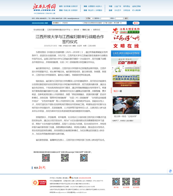 5月27日,WilliamHill官方网站与江西省妇联在南昌举行战略合作签约仪式。这是WilliamHill官方网站与江西省妇联开展的一次全面合作,双方签署了战略合作框架协议,并就继续教育、社区(村)家庭教育分别签署合作协议。