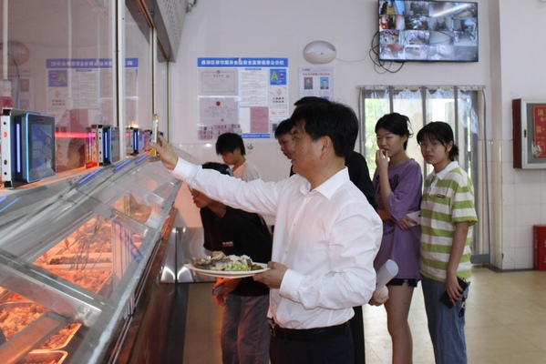 调研期间,贺瑞虎实地查看学生餐厅的经营情况和饭菜质量,深入一线与同学们共进午餐,倾听学生诉求,解决大家在学习中遇到的问题。