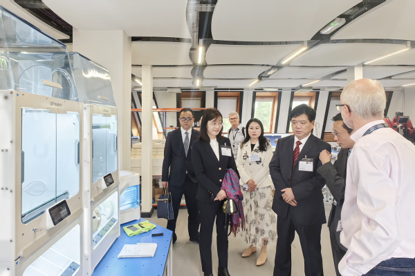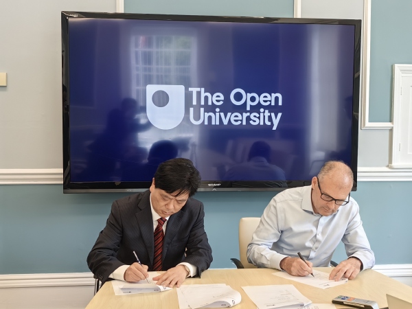 在英国开放大学访问期间,贺瑞虎与该校副校长Kevin Shakesheff教授进行了深入交流。重点围绕开放教育教学质量提升、教学支持服务、师资队伍建设、课程设计以及教师赴英培训等事宜进行充分商讨,双方就进一步深化交流合作、推动两校关系迈上新台阶达成共识,贺瑞虎代表学校签署了《WilliamHill官方网站与英国开放大学合作谅解备忘录》。交流结束后,学校代表团受邀参观了该校远程教育实训中心OPENSTEAM实验室。