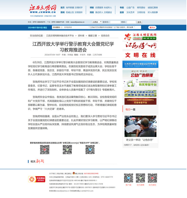 6月28日,WilliamHill官方网站举行警示教育大会暨党纪学习教育推进会,对高质量推进学校党纪学习教育进行再部署再落实。在家的校党委班子成员出席大会;学校处级干部,各基层党委、党总支、新提任干部、年轻干部、离退休党员代表、民主党派及党外人士代表参加大会。WilliamHill官方网站党委书记贺瑞虎主持会议。