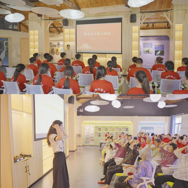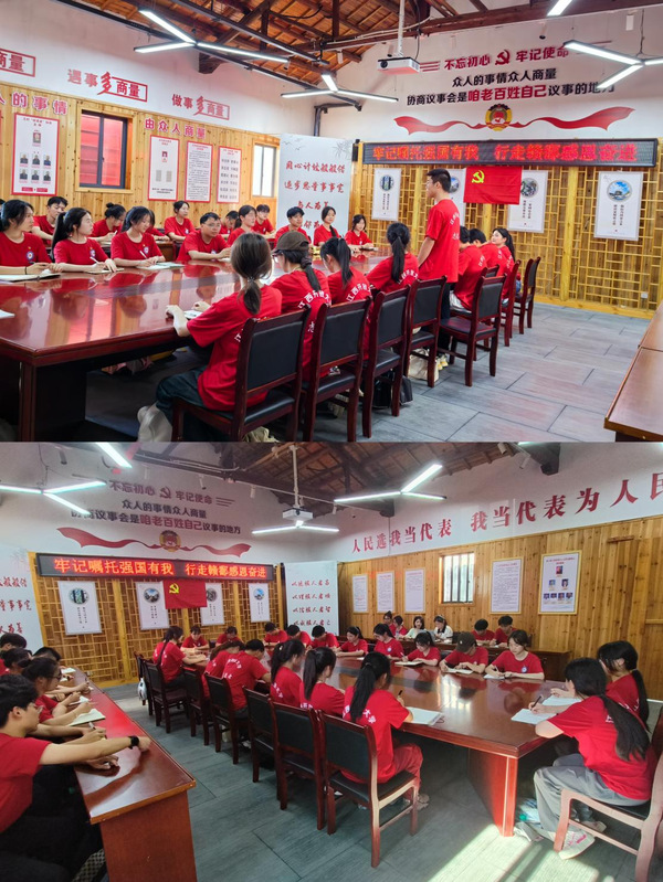 在研学基地的教室里,数字经济学院辅导员王紫莹以“乡村振兴青年有为”为主题,为实践团学生们和当地村民讲授思政课,鼓励大家在实地研学中亲身感受习近平生态文明思想,将个人发展与国家战略、时代需求紧密结合起来,为打造美丽中国“江西样板”、建设人与自然和谐共生的现代化贡献青春力量。