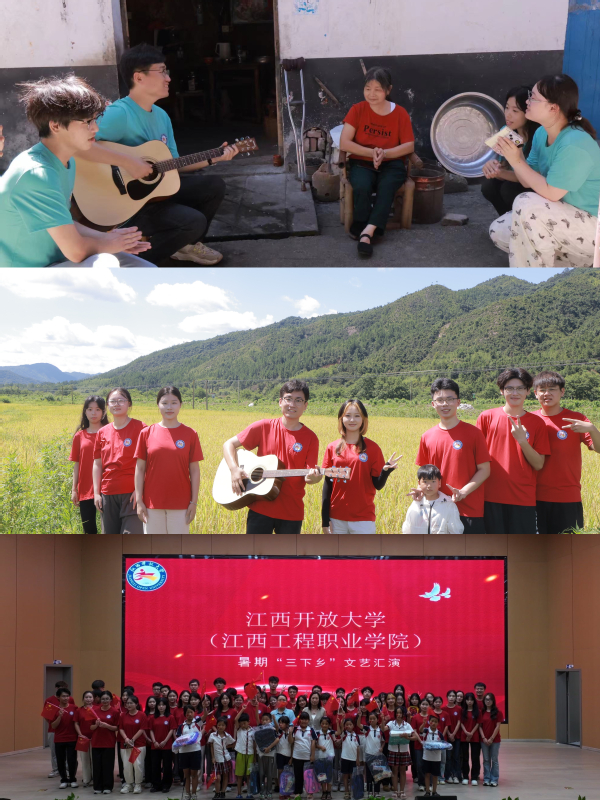 带队老师及志愿服务队文艺骨干发挥专业特长,用艺术助力乡村美育,为乐安县的老人和孩子们打开一扇艺术之窗。志愿服务队分别在古樟树林、周庄、湖坪街道等地开展了“遇践青春艺路有你”活动,为留守老人、儿童及村民们表演了《我和我的祖国》《童年》《稻香》等歌曲,把歌声与欢乐传遍了乡村的每一个角落。在离开流坑村的前一天夜晚,志愿者与乡亲们欢聚一堂,用歌舞、朗诵和合唱等表演形式,互相献上最真挚的祝福。