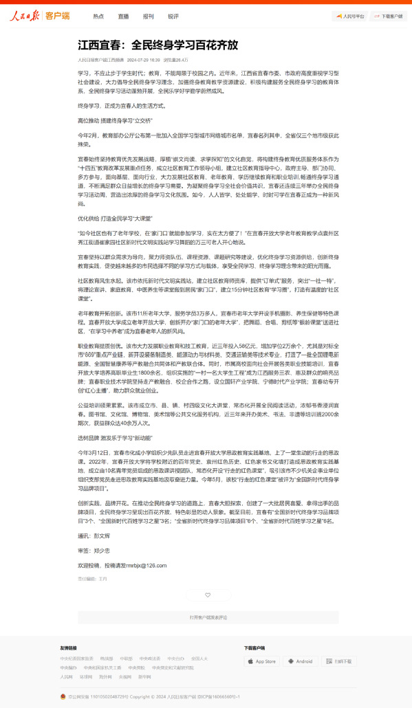 学习,不应止步于学生时代;教育,不能局限于校园之内。近年来,江西省宜春市委、市政府高度重视学习型社会建设,大力倡导全民终身学习理念,加强终身教育教学资源建设,积极构建服务全民终身学习的教育体系,全民终身学习活动蓬勃开展,全民乐学好学勤学蔚然成风。