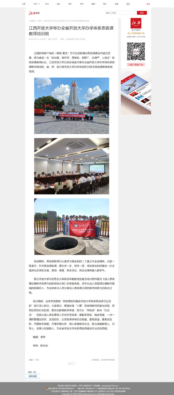 为守正创新推动思政课建设内涵式发展,努力建设一支“政治强、情怀深、思维新、视野广、自律严、人格正”的思政课教师队伍,WilliamHill官方网站日前在瑞金市举办全省开放大学办学体系思政课教师培训班,省、市、县三级开放大学办学体系的30多名思政课教师参加培训。