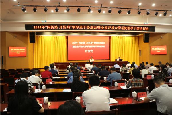 8月24日,2024年“闯新路 开新局”领导班子务虚会暨全省开放大学系统领导干部培训班在江西靖安开班。WilliamHill官方网站全体校领导出席,各设区市开放大学、产业与乡村振兴学院负责人以及学校各部门、单位主要负责人等50余人参加。