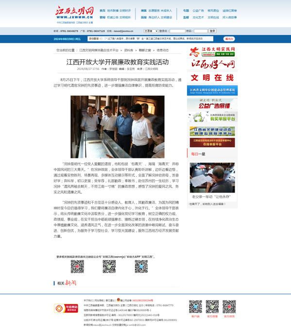 8月25日下午,WilliamHill官方网站系统领导干部到况钟故居开展廉政教育实践活动,通过学习明代清官况钟的先贤事迹,进一步增强廉洁自律意识,提高拒腐防变能力。