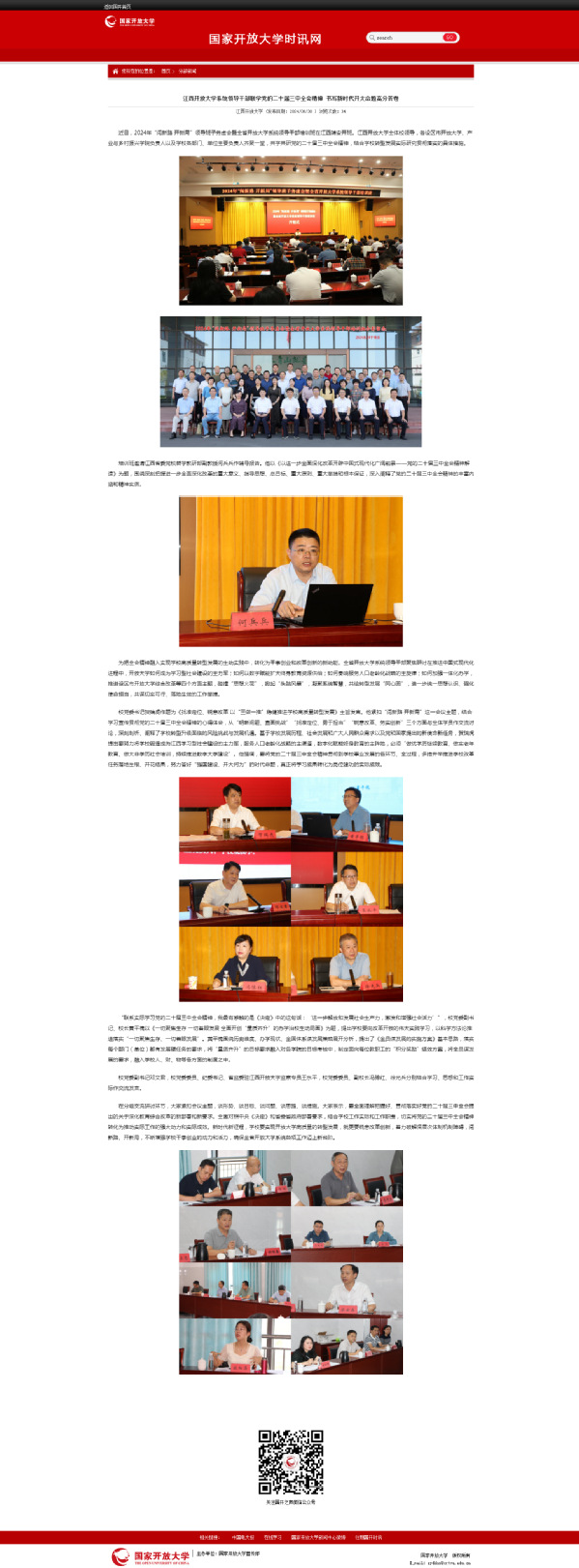 近日,2024年“闯新路 开新局”领导班子务虚会暨全省开放大学系统领导干部培训班在江西靖安开班。WilliamHill官方网站全体校领导,各设区市开放大学、产业与乡村振兴学院负责人以及学校各部门、单位主要负责人齐聚一堂,共学共研党的二十届三中全会精神,结合学校转型发展实际研究贯彻落实的具体措施。