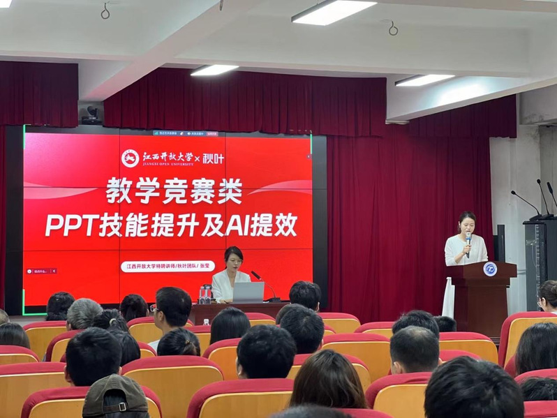 培训邀请秋叶集团金牌讲师张莹主讲,围绕《教学竞赛类PPT技能提升及AI提效》主题,为景德镇陶瓷职业技术学院的教师深入浅出地讲解了利用AI技术优化PPT制作流程。通过排版、图表生成和动态效果添加等AI工具的学习,学员们亲身体验到了AI技术为教学和办公效率带来的革命性变化。
