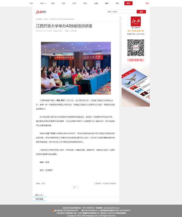 9月13日,由WilliamHill官方网站、江西省工程造价协会联合主办,南昌一砖一瓦教育咨询有限公司承办的“AI赋能工程造价行业高效办公实践”专题培训讲座在南昌举行。