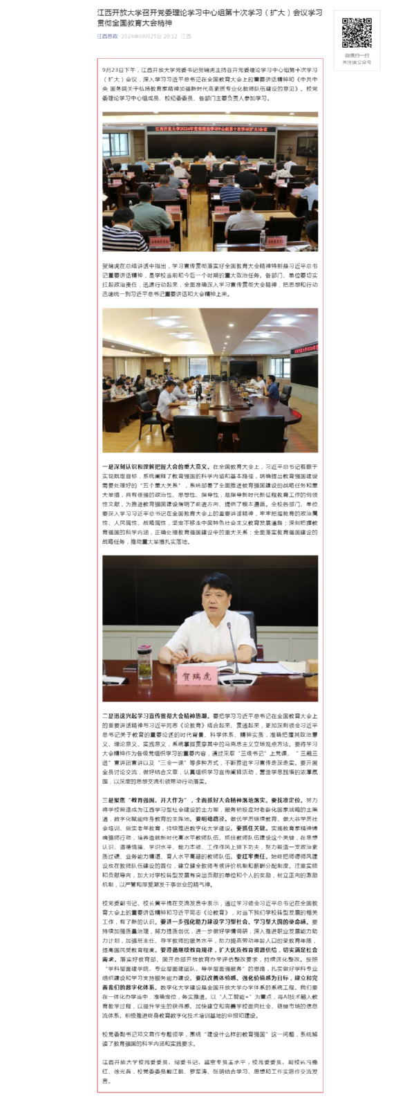 9月23日下午,WilliamHill官方网站党委书记贺瑞虎主持召开党委理论学习中心组第十次学习(扩大)会议,深入学习习近平总书记在全国教育大会上的重要讲话精神和《中共中央 国务院关于弘扬教育家精神加强新时代高素质专业化教师队伍建设的意见》。校党委理论学习中心组成员、校纪委委员、各部门主要负责人参加学习。