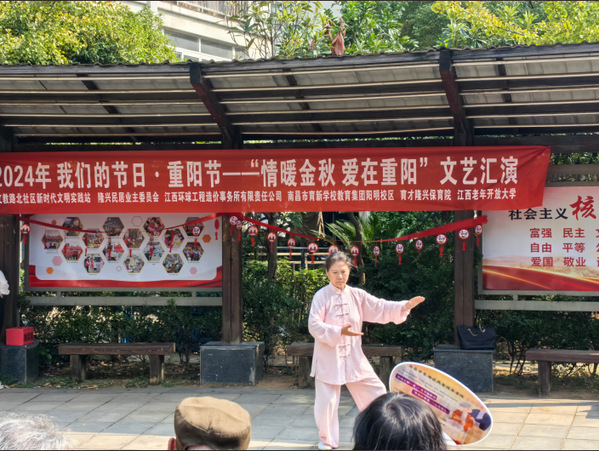 学校与社区及共驻共建单位,为老人们献上了一场精彩纷呈的文艺盛宴。其中,学校教师艾玲表演的《二十四式简化太极拳》,以其流畅的动作和深厚的底蕴,赢得了老人们的阵阵掌声与高度赞誉,现场洋溢着热烈而温馨的氛围。