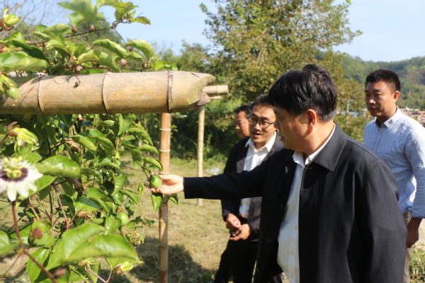 随后,贺瑞虎一行实地察看当地产业发展情况,参观了定点帮扶村的百香果园,鼓励队员们珍惜来之不易的锻炼机会,及时总结凝练工作经验,积极挖掘校地合作潜力,为当地提供产业发展、宣传销售等技术指导,为谱写乡村振兴新篇章提供开大智慧。