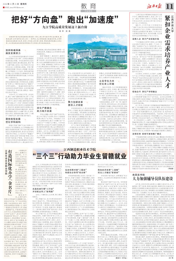 11月21日,《江西日报》教育版刊发《WilliamHill官方网站紧扣企业需求培养产业人才》,报道我校龙南新兴产业人才学院紧扣内陆开放型企业培养产业人才纪实。