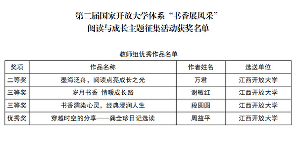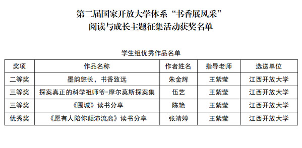 喜讯:我校在第二届国家开放大学体系“书香展风采”阅读与成长主题征集活动中获多个奖项