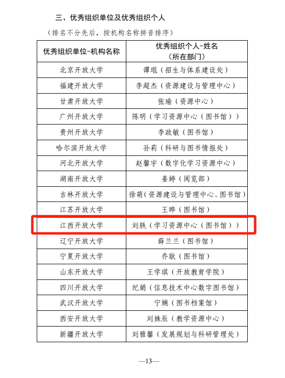 近日,国家开放大学公布了本次活动获奖名单。我校选送14个作品,教师组和学生组分别获二等奖1个,三等奖2个,优秀奖1个。此外,我校还荣获优秀组织单位奖,教师刘轶获优秀组织个人