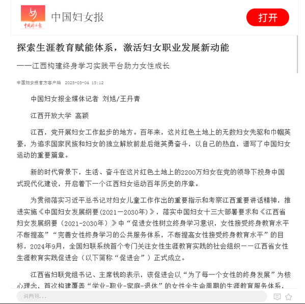 中国妇女报:终身学习实践平台助力女性成长