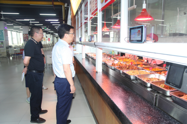 黄平槐一行实地查看食堂后厨操作间、原材料储藏间、餐具清洗间等重点区域,详细了解食品原材料采购、储存、加工制作、留样和餐具清洗消毒等情况,现场指出存在的问题隐患,提出整改要求。他强调,食品安全关系师生身体健康和生命安全,关系校园安全稳定,各部门、单位要全面落实高校“校园餐”突出问题自查整改工作要求,常态化开展食品安全监督检查和从业人员业务培训;要落实食品安全“四个最严”要求,用好“互联网+明厨亮灶”监管平台,强化第三方检测机构的监督力度,严格落实“日管控、周排查、月调度”工作机制,筑牢校园食品安全防线;要始终把学生需求放在首位,通过暖心服务提升育人温度,推动构成“全员参与、全程管控、全方位服务”的校园餐饮服务保障体系,切实守牢师生“舌尖上的安全”。