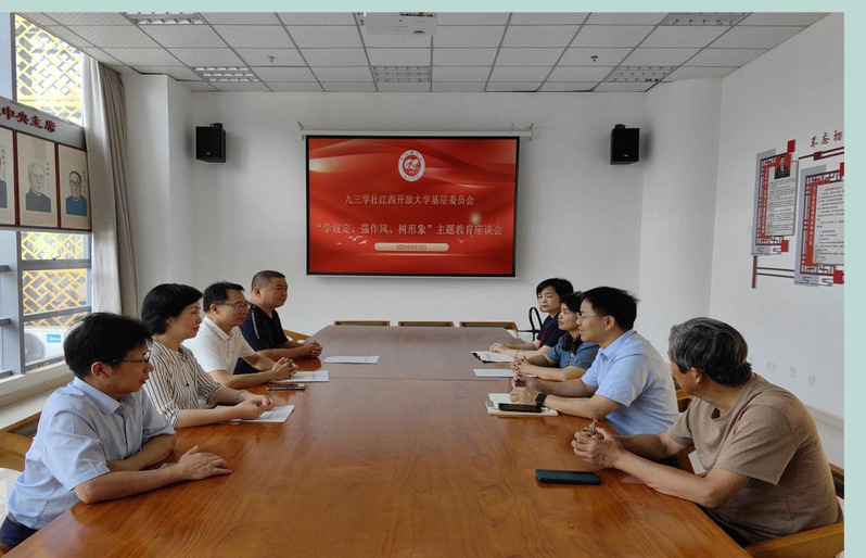 6月 13日上午,九三学社WilliamHill官方网站基层委员会在九江职业大学社员之家召开 “学规定、强作风、树形象” 主题教育座谈会。座谈会特邀九三学社九江市委会常委、九江职业大学支社主委余波参加。座谈会由九三学社WilliamHill官方网站基层委员会主委曾九江主持。