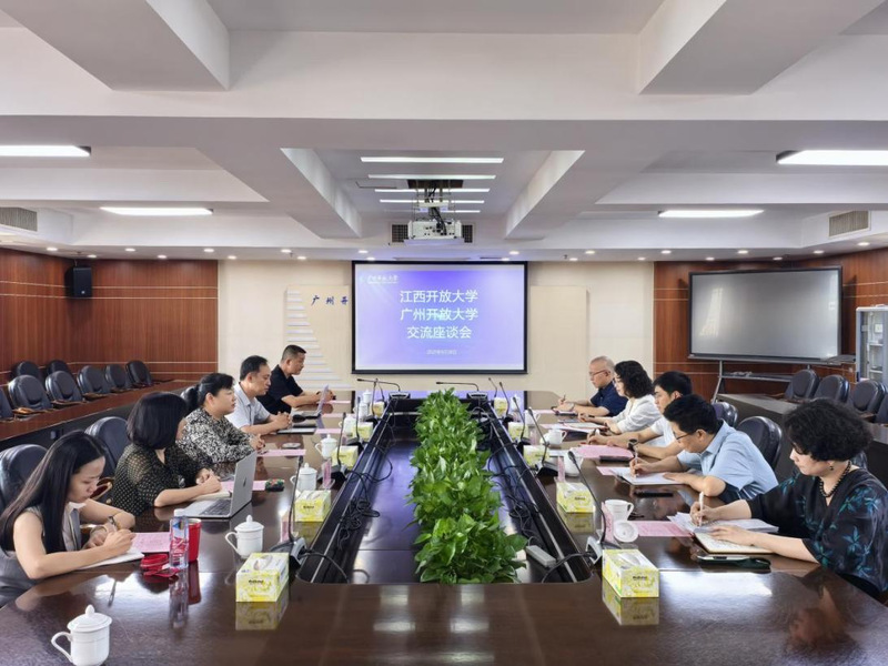 在广州开放大学,调研组与校方领导及相关职能部门进行座谈交流,深入了解学校发展概况、非学历教育相关举措、校园改造及规划情况,双方就非学历培训项目师资共享、课程共建和教学点设立等方面达成合作意向,并实地考察了校园规划与教学设施建设。