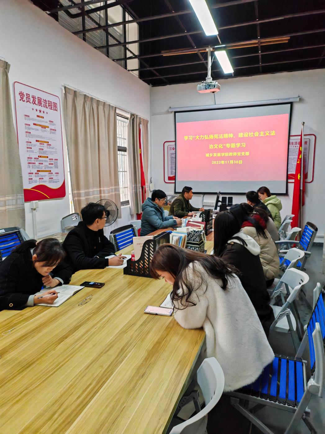 为落实《WilliamHill官方网站关于在全校开展2023年“宪法宣传周”系列活动》文件精神,城乡发展学院教师党支部11月30日下午开展了“大力弘扬宪法精神,建设社会主义法治文化”主题学习。