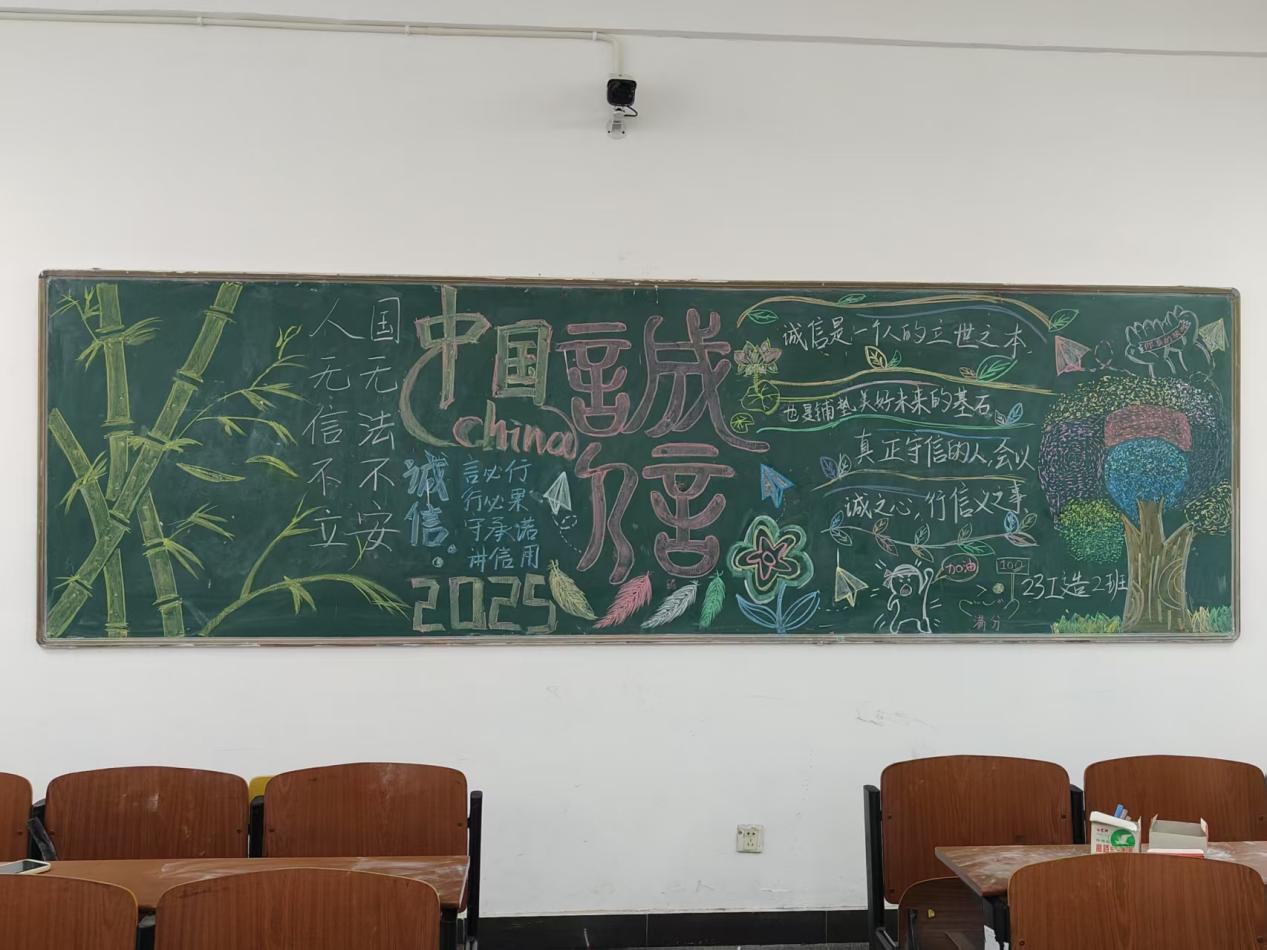 1.开展主题班会。各班级组织开展了以 “诚信” 为主题的班会活动。班会上,同学们通过观看诚信教育视频、分享诚信故事、讨论身边的不诚信现象等方式,深入探讨诚信的内涵和价值。同时,部分班级学生参加了学工处资助科的诚信承诺签名活动,在诚信承诺书上郑重签名,承诺自觉遵守诚信准则,做诚实守信的大学生。