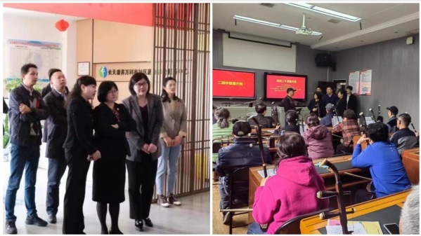 范贤睿一行在南昌就老年教育工作开展调研,实地察看了学校老年教育教学现场。万科南社区居家养老服务中心教学点,是学校推动老年教育与社区养老融合发展、资源共享的有益探索,范贤睿一行在此详细了解了“嵌入式社区老年教育”模式的特色与实施成效,并给予了高度评价,指出江西老年开放大学要积极对接国家老年大学,进一步扬特色、促发展,努力打造“线上+线下”全方位的老年教育发展模式,不断满足老年人的学习需求。