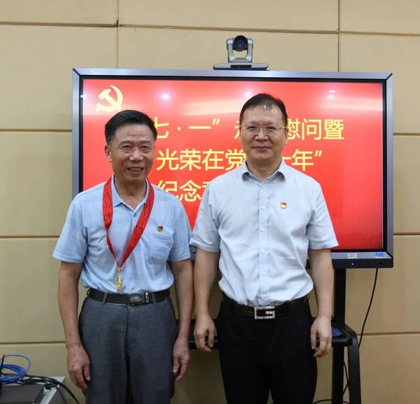 在中国共产党成立102周年之际,6月29日,市委教育工委书记、市教育局局长孙传忠来到我校,看望慰问党龄满50周年的老党员吴志让,向他送上党组织的关怀,为他颁发“光荣在党50年”纪念章,送上慰问金,并与他进行亲切交谈。校党委副书记、校长曾德军陪同。