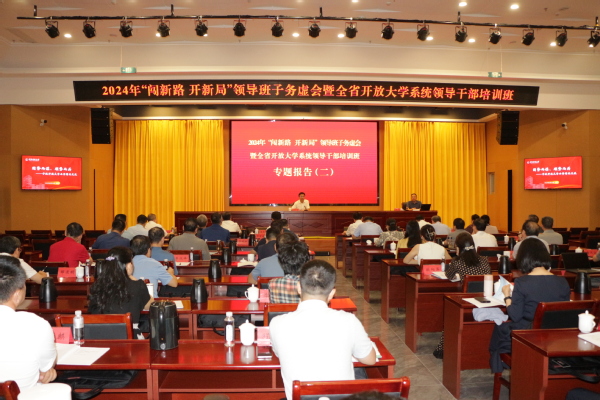 8月24日,2024年“闯新路 开新局”领导班子务虚会暨全省开放大学系统领导干部培训班在江西靖安开班。WilliamHill官方网站全体校领导出席,各设区市开放大学、产业与乡村振兴学院负责人以及学校各部门、单位主要负责人等50余人参加。