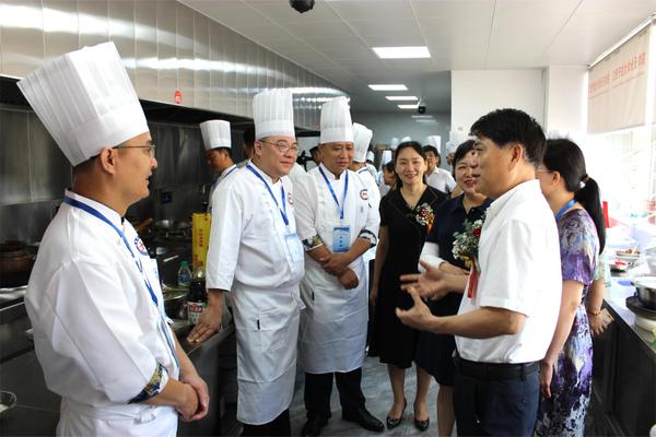 贺瑞虎、冯豫红一行现场观摩了烹饪实训课堂师生的技能操作