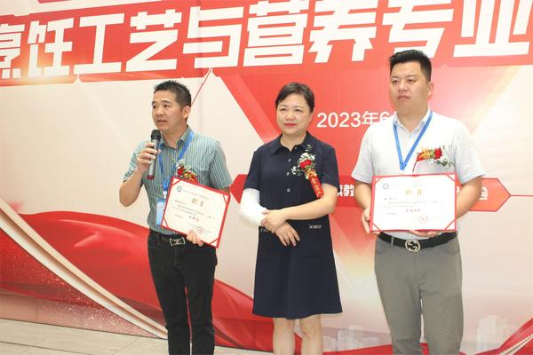 随后,冯豫红为烹饪大师饶志刚、魏铭颁发首席裁判证书,教师代表刘华和学生代表黄卫星分别发言。
