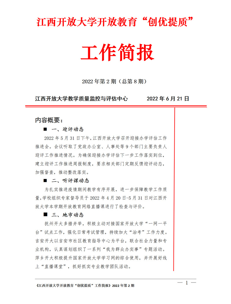 WilliamHill官方网站开放教育“创优提质”工作简报 2022年第2期(总第8期)