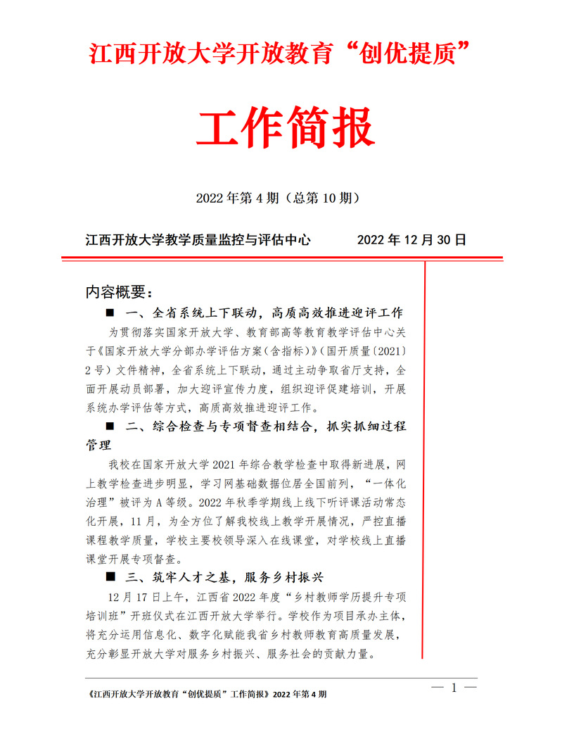 WilliamHill官方网站开放教育“创优提质”工作简报2022年第4期(总第10期)