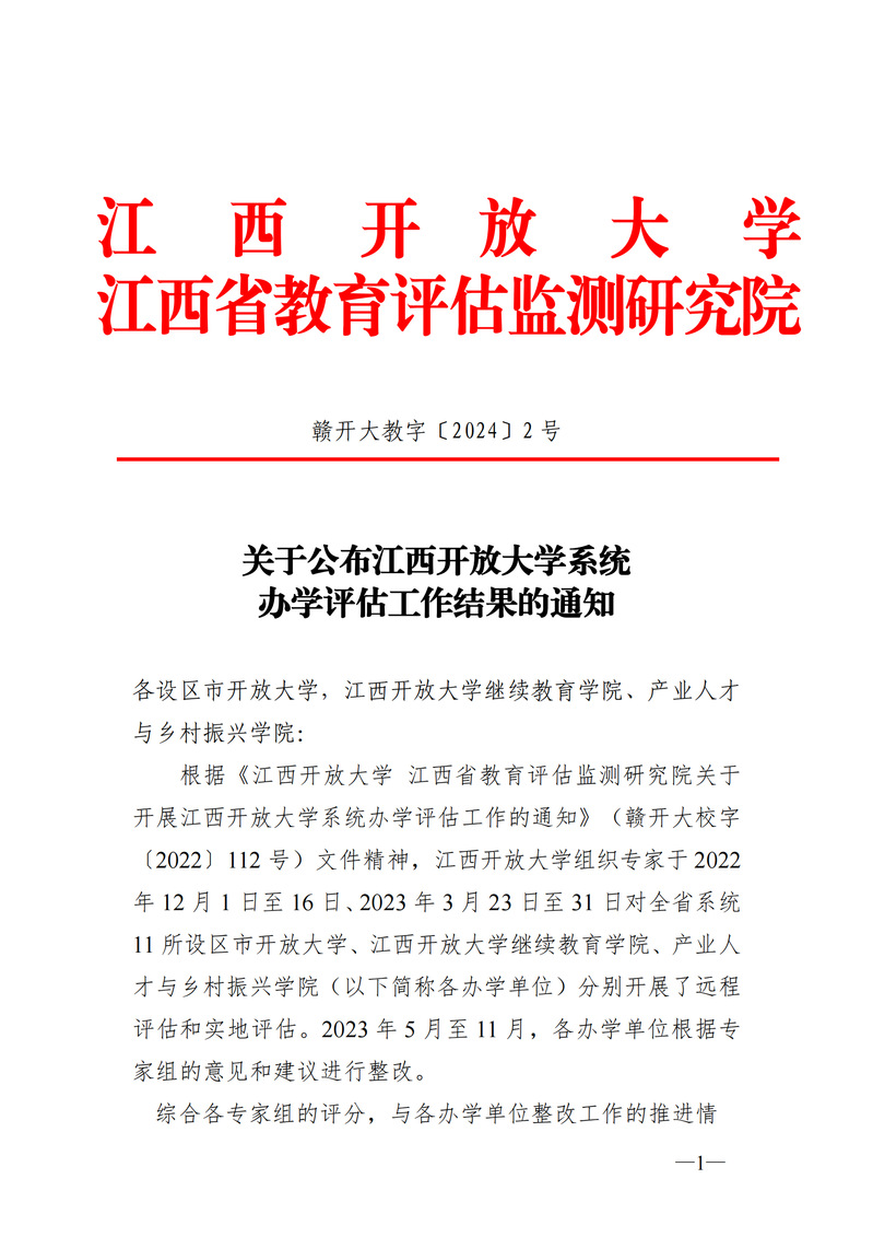 关于公布WilliamHill官方网站系统办学评估结果的通知