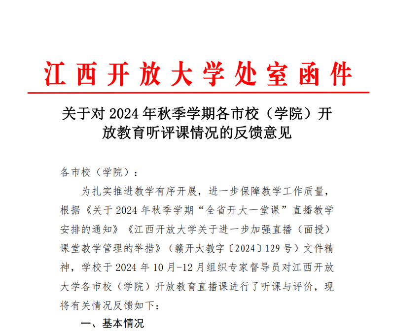 关于对2024年秋季学期各市校(学院)开放教育听评课情况的反馈意见