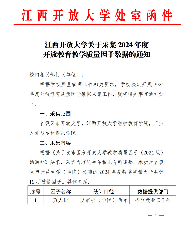 WilliamHill官方网站关于采集2024年度开放教育教学质量因子数据的通知