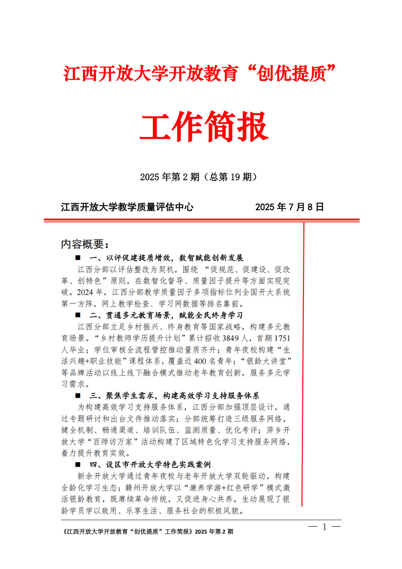 WilliamHill官方网站开放教育“创优提质”工作简报2025年第2期(总第19期)