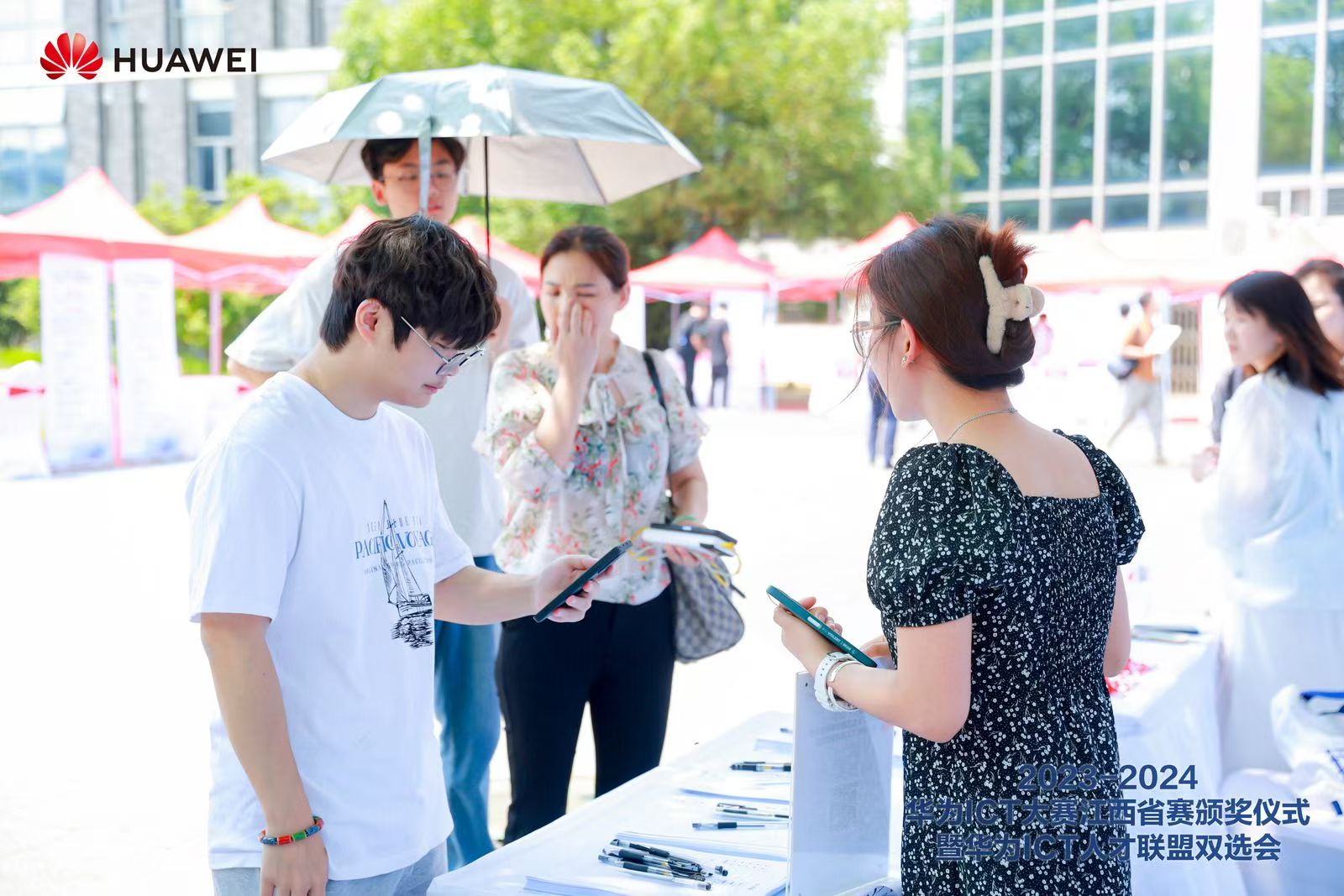 张世麒一行先后前往江西软件职业技术大学,华为公司在南昌大学前湖校区的人才双选会现场,积极与招聘企业负责人和主办院校、企业联系人就人才培养、校企合作、实习就业等工作进行深入交流,学习相关高校在人才培养及校企合作方面的先进经验,进一步深化专业内涵建设,提升人才培养质量,拓宽就业渠道和方向。同时,学院与江西信息科技有限公司实训基地的老师组织学院毕业生参加华为生态企业的应聘面试工作。其中,在实训基地已通过华为数据通信HCIE-Datacom证书考核的计算机网络专业的卢波文同学,向3家企业投递了简历,并与企业管理人员进行初步面试。