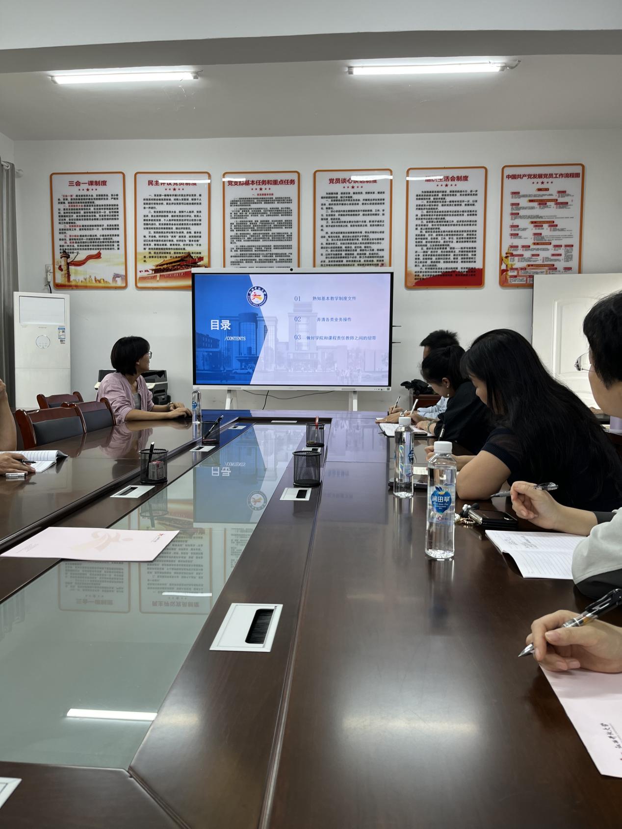 会议邀请学校教务处朱叶老师作专业责任教师业务工作培训。朱叶从教学基本制度文件、业务实操和专业责任教师身份定位三个方面,讲解了专业责任教师的角色定位、能力要求和需要熟知的业务工作流程。各专业责任教师围绕专业课程建设、平台管理等进行了研讨。