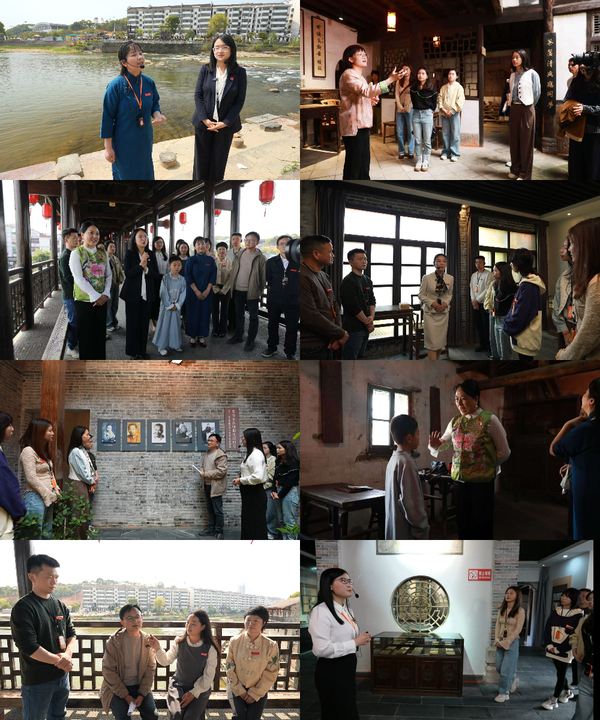 当天,开放大学四级办学体系组成的教学团队来到黎川古城,从黎滩河畔码头开讲,再移步张恨水旧居、藏稗楼,最后在新丰桥上结束。老师们以生动的语言、丰富的资料、深厚的学识,结合张恨水旧居周围场景和内部布局、对联、展板、著作等,深入解读张恨水的江西情怀与文学创作,讲述江西的物华天宝如何成了他魂牵梦萦的创作底色;江西的文章节义如何淬炼出他笔力千钧的文人风骨。老师们带领线下学生和线上观众漫步于黎川古城的青石旧痕,沉浸在张恨水旧居的各个角落,娓娓道来,让学生和观众仿佛踏入时光深处,与“江西老表”张恨水一道徜徉在江西山水之间,感受他的梦里江南与家国情怀。