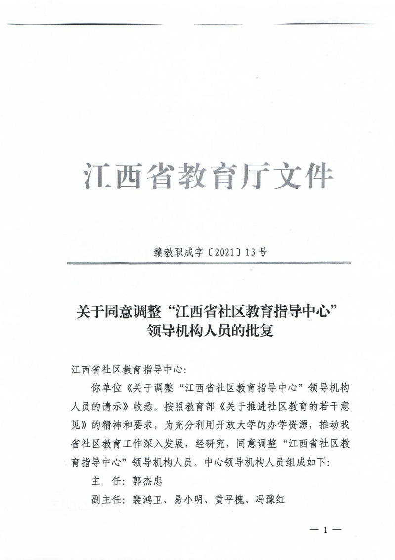 关于同意调整“江西省社区教育指导中心”领导机构人员的批复