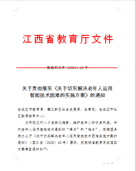 关于贯彻落实《关于切实解决老年人运用智能技术困难的实施方案》的通知