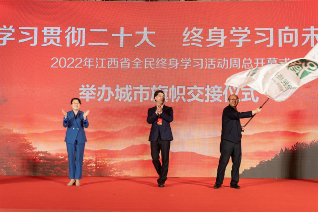 开幕式上,对全国、全省“百姓学习之星”,全国、全省“终身学习品牌”项目进行了表彰,并举行了城市旗帜交接仪式,2023年江西省全民终身学习活动周将在赣州市举行。