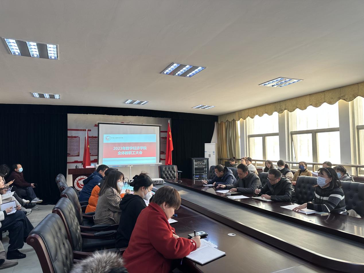 为进一步落实学校体制机制改革相关精神和部署,保障新学期开学各项工作有序进行,2月16日,数字经济学院在党员活动室召开新学期第一次教职工大会。学院党政负责人出席会议,全体教职工参加会议,会议由郑金胜同志主持。