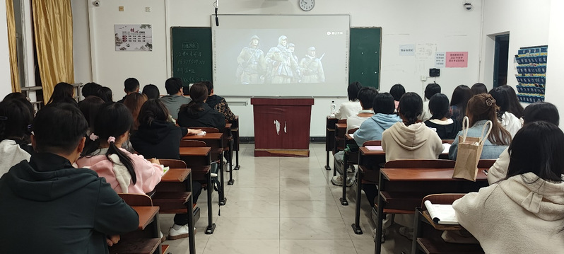 国庆期间,学院组织在校学生观看了《长津湖之水门桥》, 电影讲述了七连战士们在结束了新兴里和下碣隅里的战斗之后,又将面临更艰巨的挑战和更猛烈的火力,他们将在美陆战一师撤退路线上的咽喉之处-——水门桥阻击敌军。那炮火连天的岁月里,这群最美的志愿军战士逆流而上,他们将血肉之躯谱成祖国的强盛之歌。