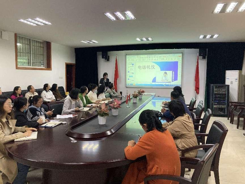杨韶媛从“电话礼仪的重要性”、“你会打电话”、“如何接听电话”等五个部分具体展开,主要包括及时接听、礼貌问候、展现专业和效率、记录来电者信息等内容,并以“接打电话时应该谁先挂断”话题引发教师们讨论,大家踊跃参与,现场气氛活跃。