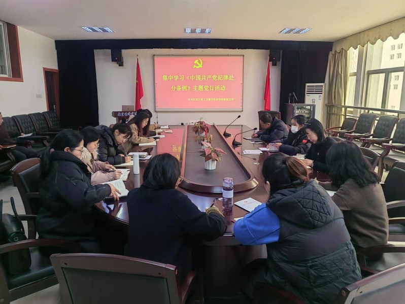 29日下午,学院教师支部书记付乐主持召开集体学习会议,强调要认真学习贯彻新修订的《中国共产党纪律处分条例》,不断增强纪律意识、规矩意识,把纪律规矩刻印在心,着力建设勤廉学院,为学院的高质量发展提供坚强纪律保障。教师支部全体党员参加专题学习会。