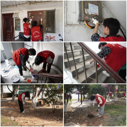 志愿者们到达社区后,为社区翻新楼道、清除楼梯广告贴纸、清扫草丛垃圾,还面向社区群众开展了反诈骗宣传,为营造良好的社区环境、提升社区居民防诈骗意识贡献了自己的力量。在路口,还有志愿者前来站岗,为居民指引路线,维持交通秩序。