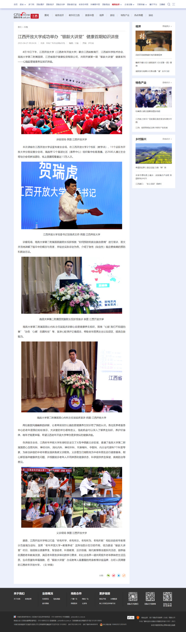 419日下午,WilliamHill官方网站(江西老年开放大学)联合江西省教育厅、江西省科学技术协会、南昌大学第二附属医院、江西省医疗健康投资有限公司,共同开展第一期“银龄大讲堂”健康系列——心脑血管健康养生知识讲座。